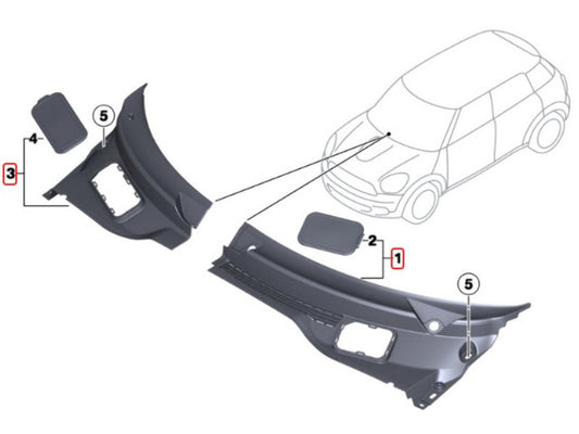 Mini Cooper Windshield Cowl Pair NEW OEM 51719808095 51719808096 R60 R61