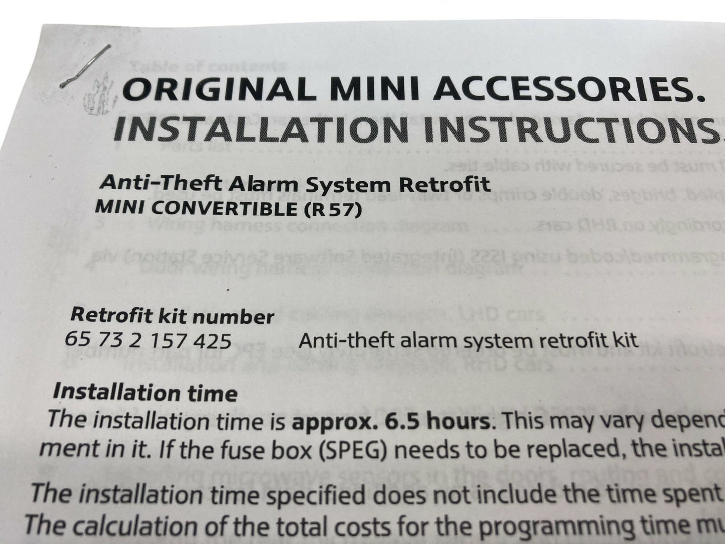 Mini Cooper Cabrio Alarm System Retrofit 65732157425 2009-2015 R57 R59
