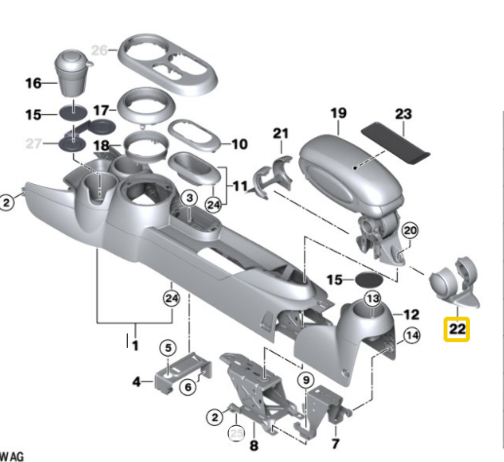 - Lower center armrest trim