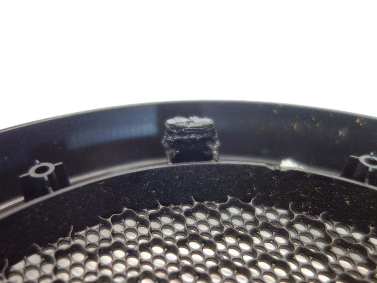 - From the factory, these grilles are plastic welded into place. The tabs go through the door panel and are melted into the panel. This used part needs to be glued into place. There are no mounting clips, etc.