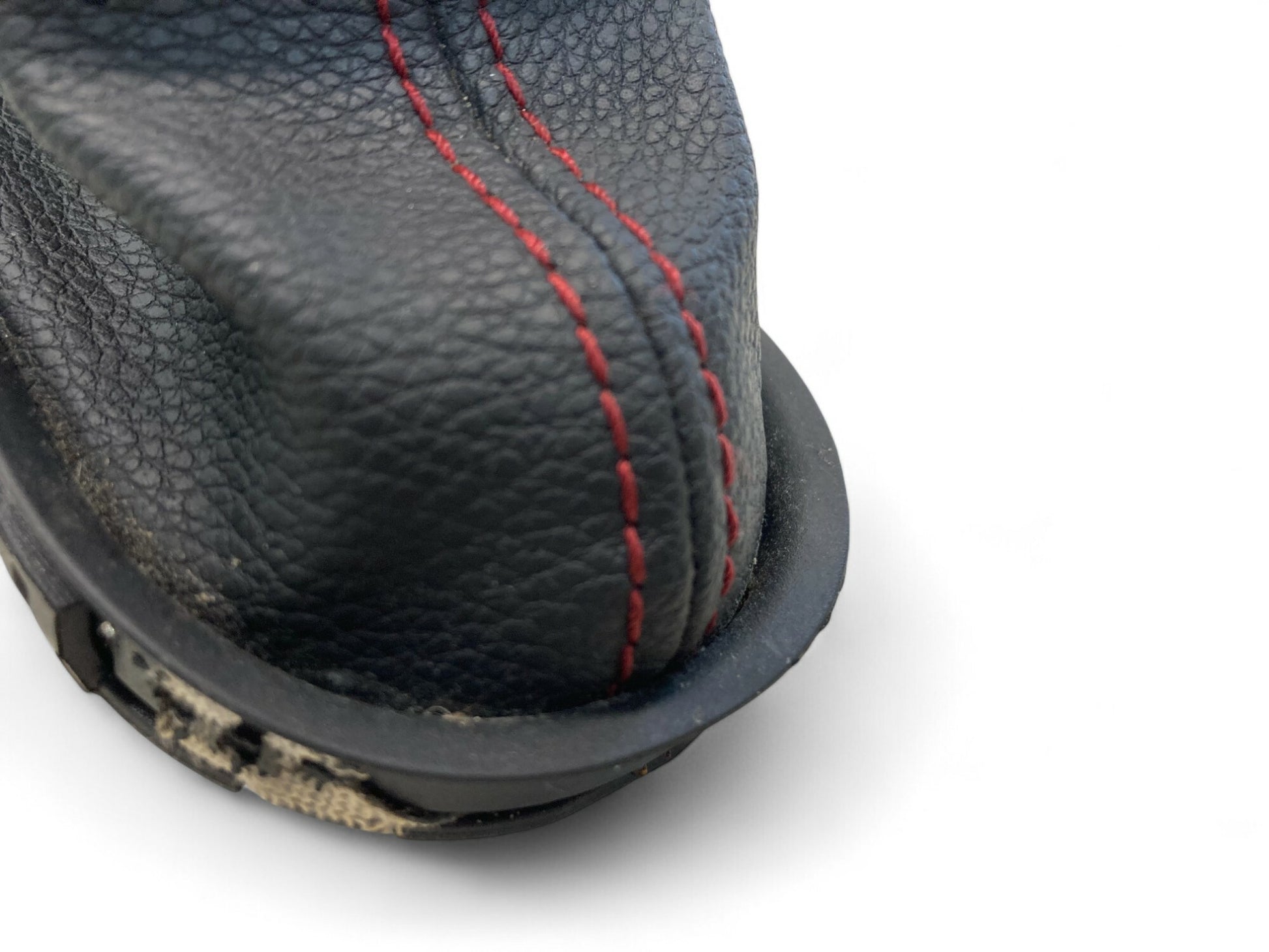 - Leather boots with red stitching