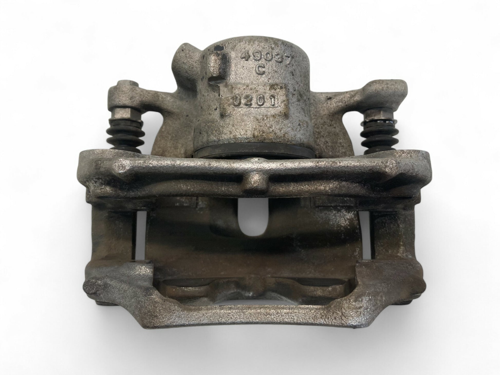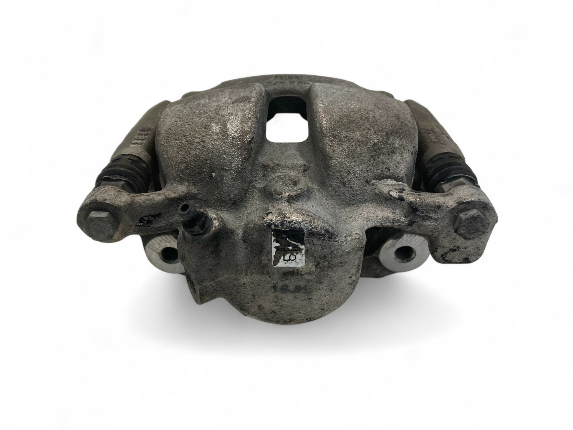 - Driver side front brake caliper and caliper carrier.