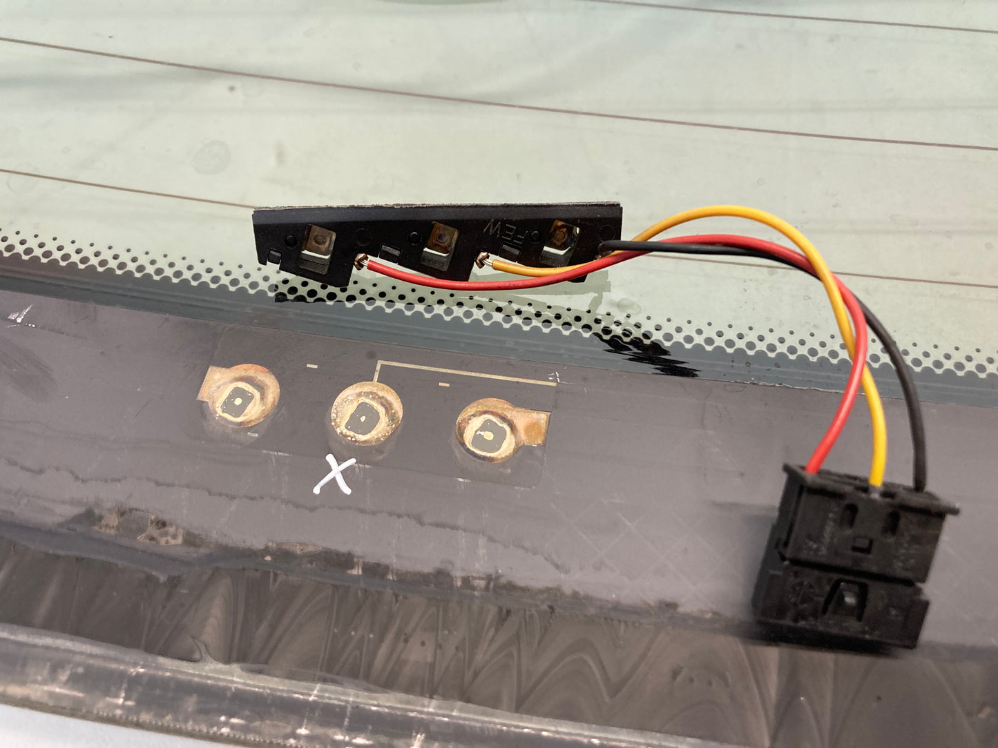 - Soldered connections for heating and diversity antenna are broken off.
