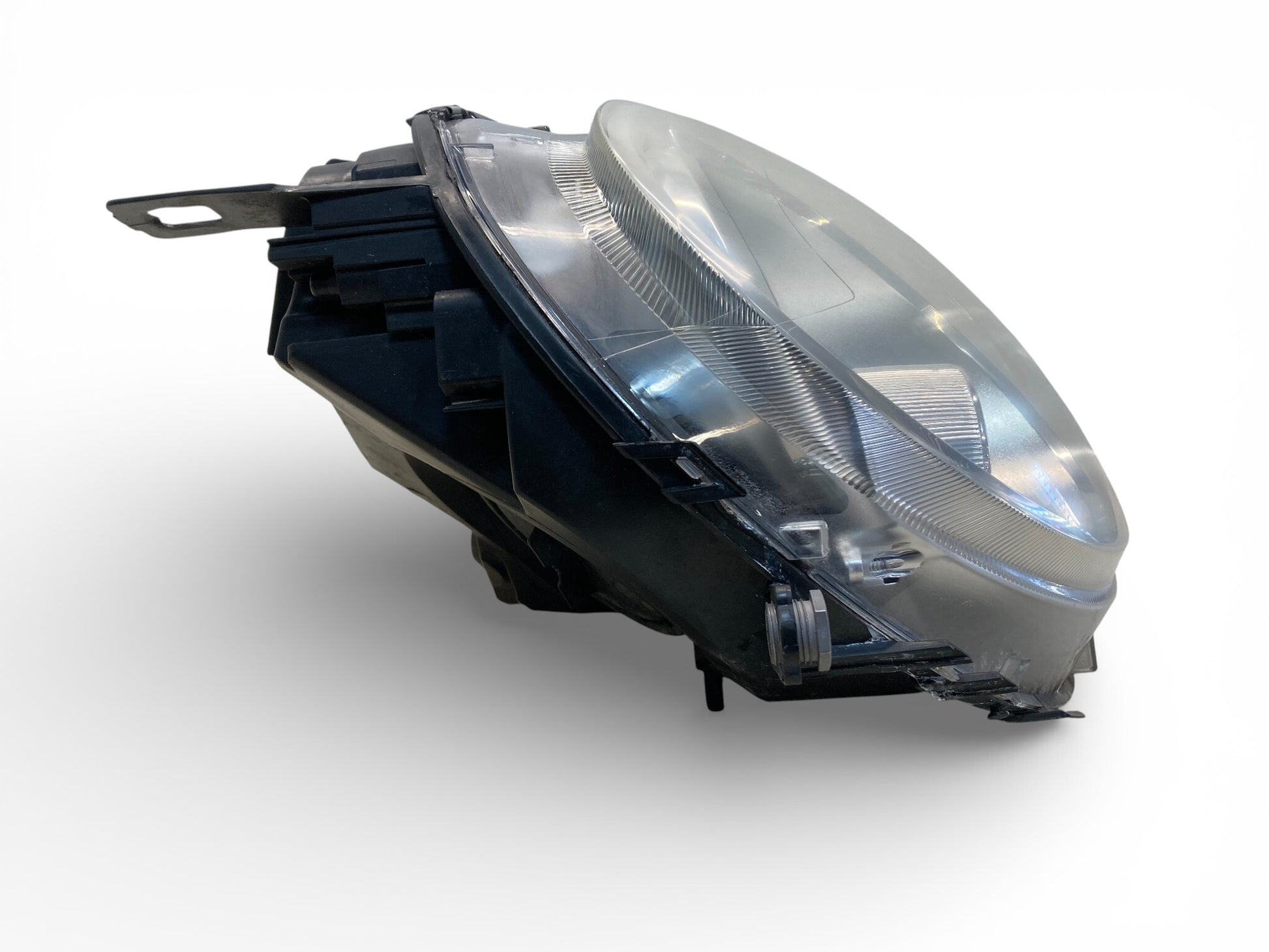 - Right side halogen headlight assembly with yellow turn signal indicator.