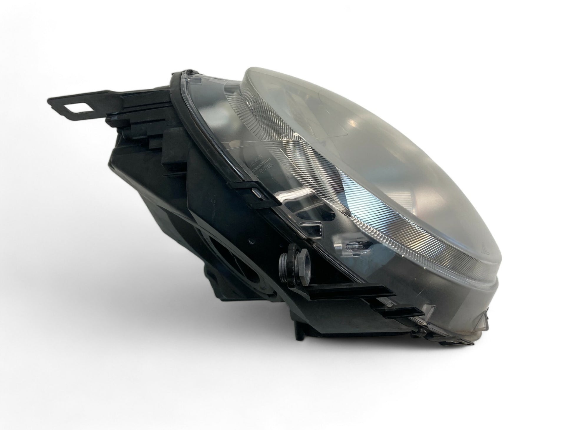 - Passengers side halogen headlight assembly with yellow turn signal indicator.